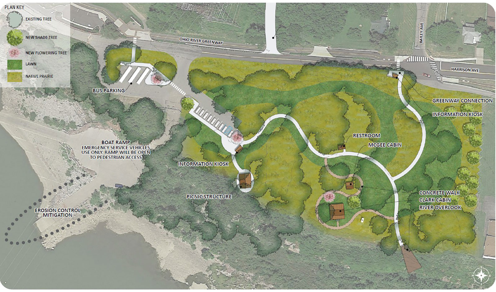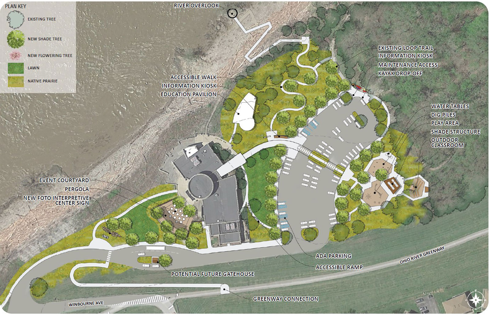 The State of Indiana and the Department of Natural Resources identified a variety of site improvements to FOTO and GRCH. Property-wide site master planning had not been undertaken since the construction of the interpretive center; and with the age of the existing facilities/ infrastructure, the evolution of the greenway, and changes in the surrounding land uses, it was time.