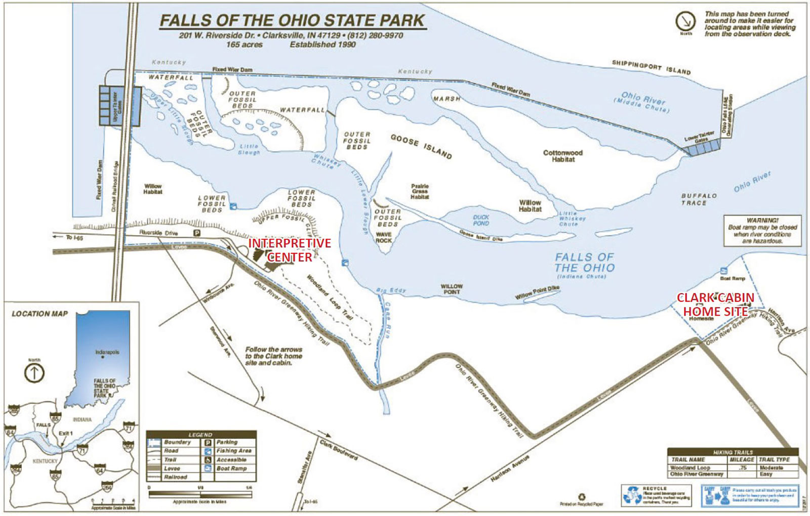 In 2022, the Indiana Department of Natural Resources (DNR) selected Landstory Inc. to provide site master planning services for The Falls of the Ohio State Park (FOTO) which included the George Rogers Clark Homesite (GRCH). The State Park is located in the Town of Clarksville, Indiana along the Ohio River.